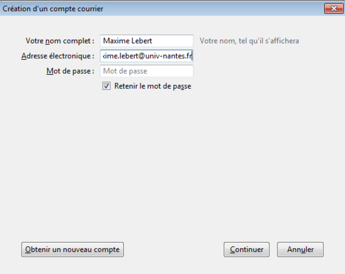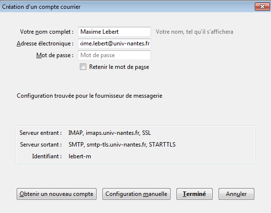 Si Thunderbird est déjà installé, fichier > nouveau > compte existant en commençant à l'étape 2.